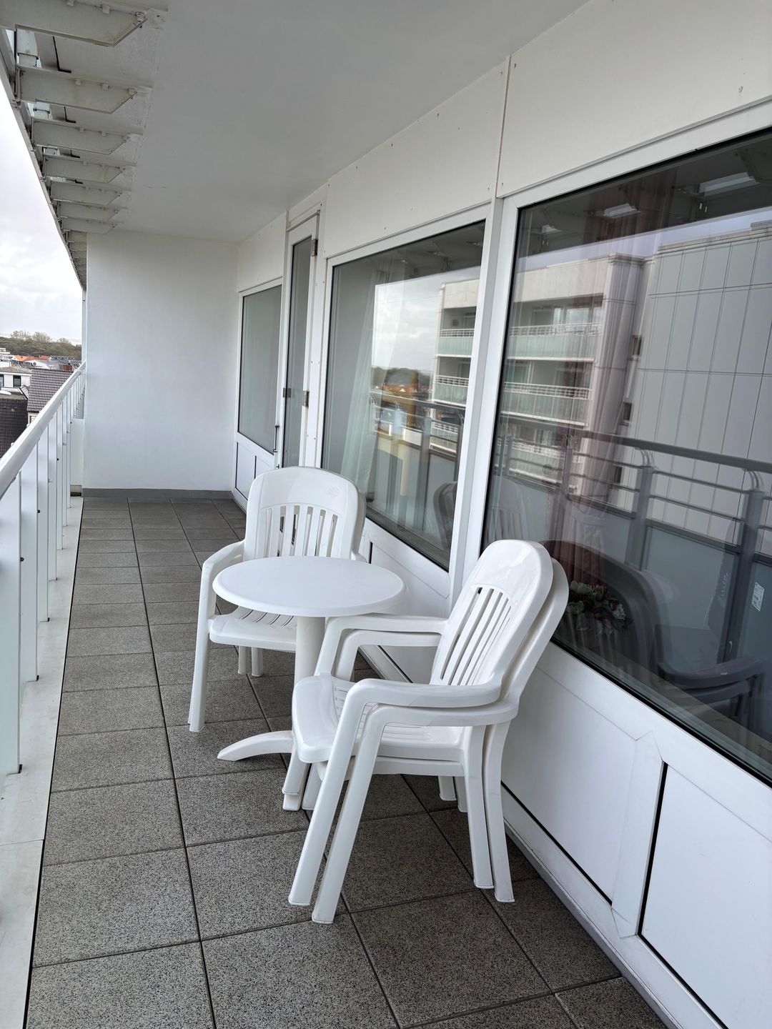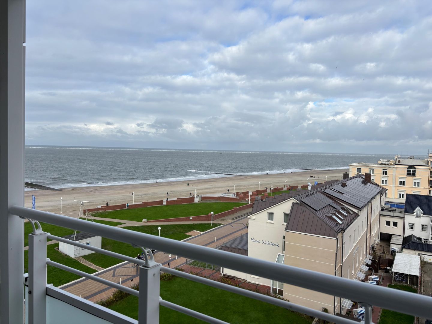 Die Wohnung hat Meerblick befindet sich in der 6. Etage im Haus „Nordseeblick“ in der Kaiserstraße – direkt am Meer.