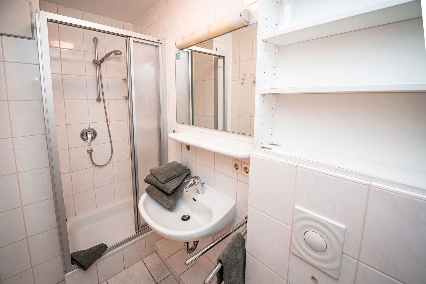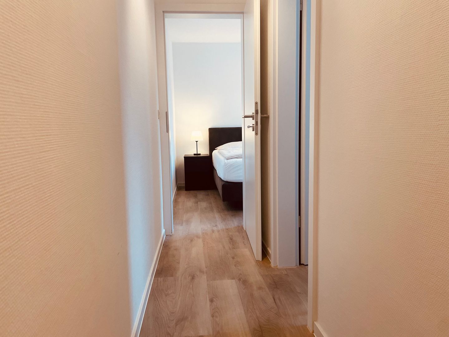 Die Wohnung verfügt über zwei separate Schlafzimmer. Ein Schlafzimmer mit einem hochwertigen Box-Spring Doppelbett (180 x 200 cm) und ein Schlafzimmer mit Etagenbett (90 x 200 cm). Das helle moderne Badezimmer ist mit Dusche / WC ausgestattet.